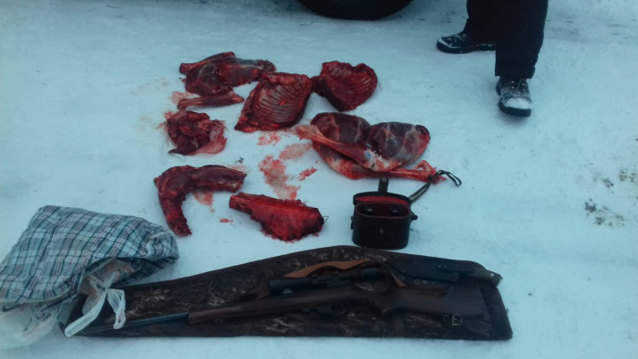Как сообщается, сотрудник группы природоохранной полиции и участковый инспектор отделения местной полицейской службы задержали возле села Новый Быт жителя Петропавловска 1983 года рождения. При проверке в его автомашине Land Cruiser были обнаружены охотничье ружье марки ТОЗ-78-01 калибра 5,6 миллиметра, патроны, ножи и разделанная туша животного. Водитель на месте утверждал, что разделанное мясо - баранина, которую он везет для личного пользования.
