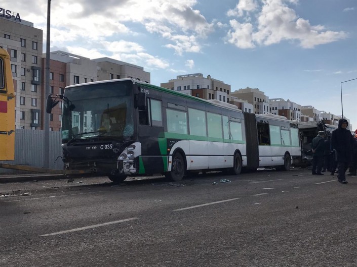 По данным "Астана ЛРТ", 26 марта на улице Улы Дала на пересечении с проспектом Кабанбай батыра произошло дорожно-транспортное происшествие с участием трех автобусов и легковых автомобилей. Автобус пригородного маршрута № 301 допустил столкновение с автобусом маршрута № 12.
