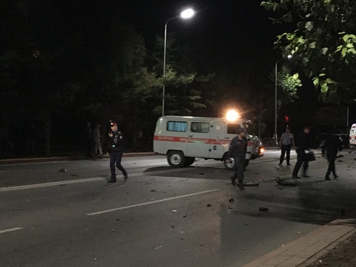 Отмечается, что осколки от автомобилей были разбросаны на несколько метров. Место ДТП было оцеплено полицейскими. Из-за аварии также было перекрыто движение по проспекту Абая.