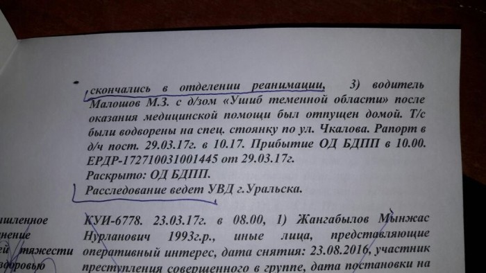 Выписка из официальной сводки полиции. © uralskweek.kz