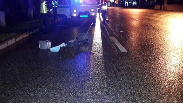 Инцидент произошел в ночь с 10 на 11 апреля на проспекте Суюнбая, между улицами Болтирик шешена и Сидоркина. По словам очевидцев, внедорожник ехал в северном направлении, когда внезапно дорогу решил перейти мужчина. Сообщается, что от полученных травм пешеход погиб на месте. Документов при нем не оказалось, личность устанавливается.