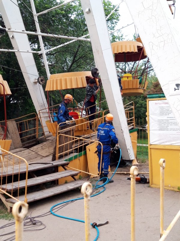 Как отметили в департаменте по чрезвычайным ситуациям, аттракцион остановился в 20.25. Сотрудники городского парка культуры и отдыха сразу же вызвали спасателей. Людей снимали с высоты при помощи пожарного подъемника.