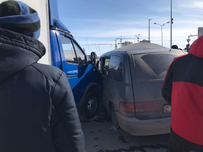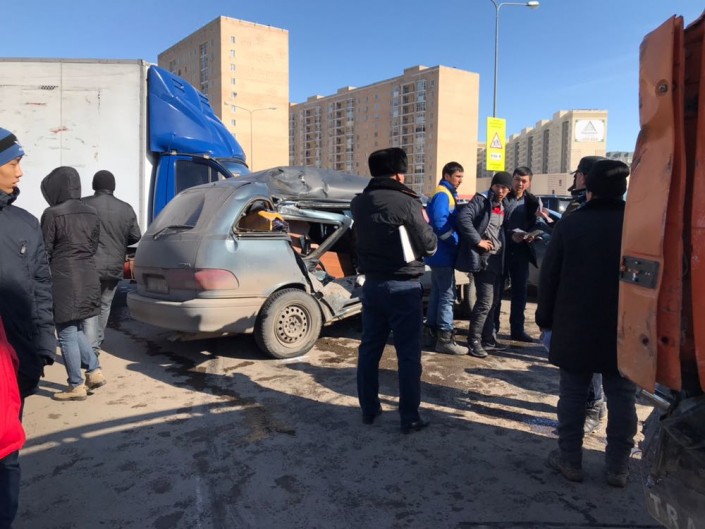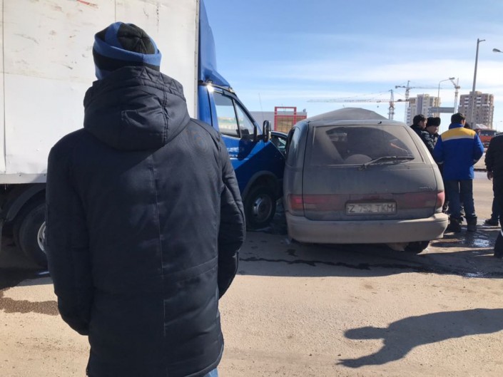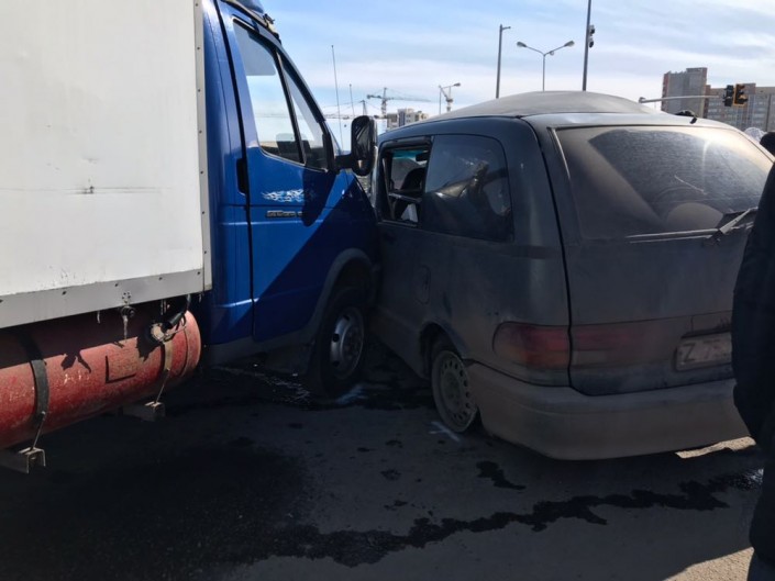 КамАЗ, "Газель" и три авто столкнулись в Астане, передает корреспондент Tengrinews.kz.