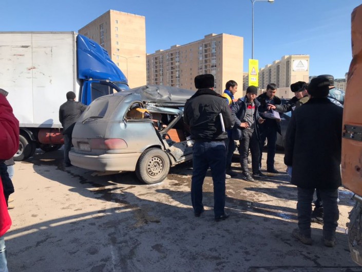 Авария произошла на пересечении улиц Кошкарбаева - Сарыкол. Как сообщает корреспондент, в ДТП столкнулись пять автомобилей: две автомашины марки Toyota, КамАЗ, "Газель" и Mercedes Gelandеwagen.