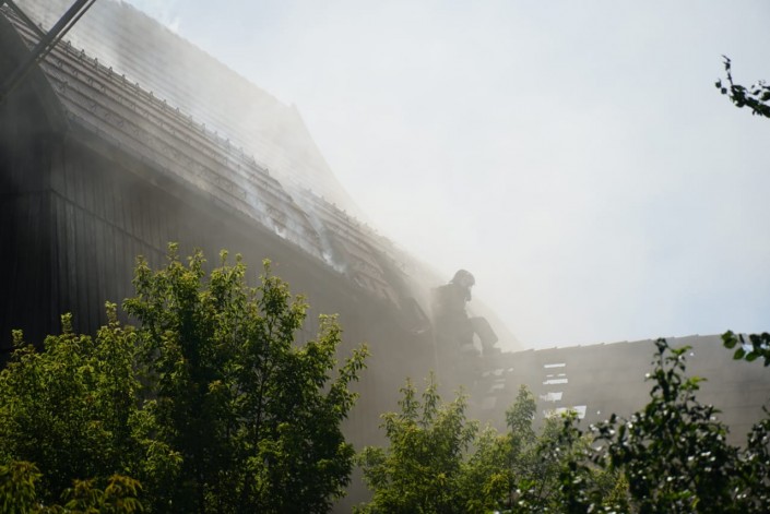 "Конструкция сложная, вся деревянная. Мы сразу отсекли тыльную сторону, чтобы пожар не распространялся дальше. До прибытия наших подразделений люди сами эвакуировались. Для оцепления территории привлечен Департамент полиции, "Астана Тазалык", машины для отвода воды.
