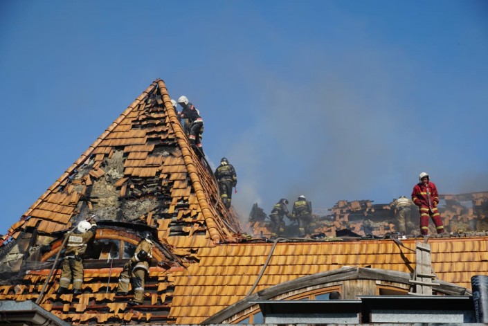 Предварительная причина... Велись ремонтные работы, может, они использовали газгольдер, газовый баллон, может, болгарку. Конструкция сложная, крыша из черепицы. До нашего прибытия никого не было в заведении. Площадь возгорания - 200 квадратов", - добавил он.