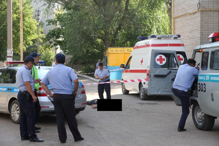 "Я пришла на работу в КСК около девяти часов утра. Только положила свою сумку на стол, зашла женщина в КСК и говорит: "На улице лежит труп человека". Я посмотрела в окно и побоялась выйти на улицу", - поделилась работница КСК Жумабеке Мутешова.