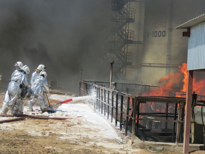 В тушении было задействовано порядка 100 человек пожарных и более 20 единиц техники. К месту аварии для оказания помощи в тушении пожара компанией "Қазақстан темір жолы" оперативно был отправлен пожарный поезд станции Шымкент. Пожарные проводили пенную атаку для тушения на нефтебазе.