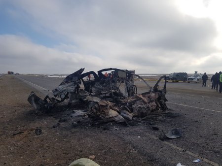 Жуткое ДТП произошло 1 марта примерно в 04:30 часов по местному времени возле поселка Сайотес на автодороге "Актау-Бейнеу" в Мангистауской области, где столкнулись грузовая автомашина марки Shacman и универсал Lada Largus. Об этом сообщает пресс-служба ДВД Мангистауской области.