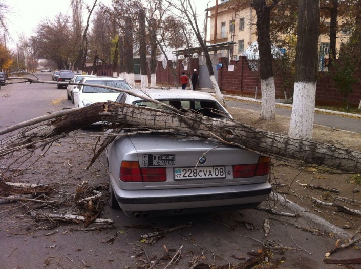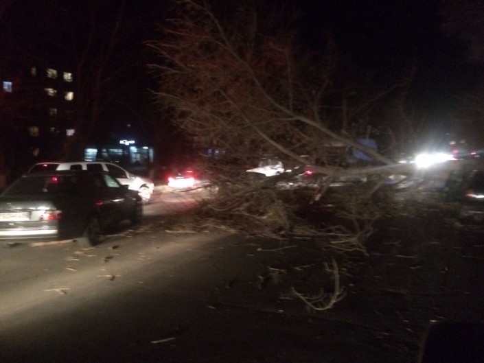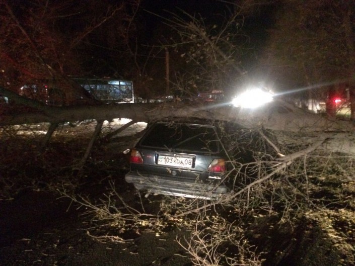 Отметим, что на местах падения деревьев на машины работают аварийно-спасательные группы из числа ДЧС.