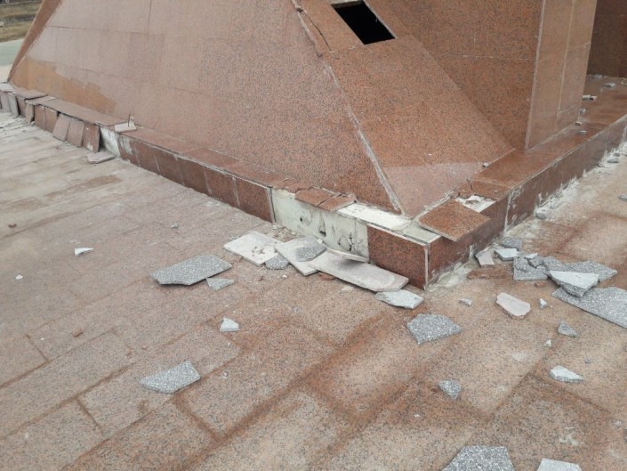 В Уральске выясняют причины падения плит с основания флагштока на новой площади, передает корреспондент Tengrinews.kz. Ранее фото с разбитыми плитами у монумента появились в Сети.