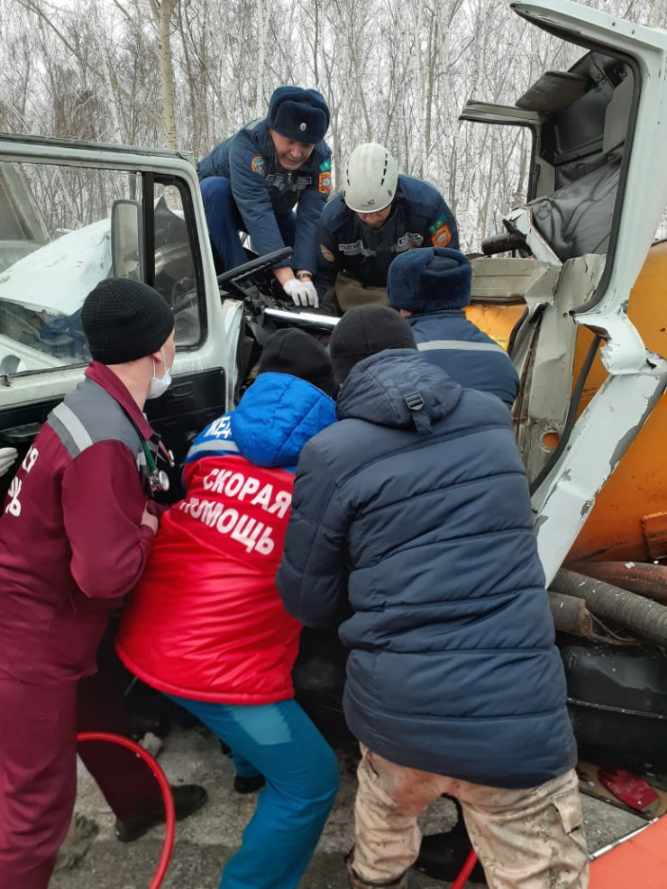 3 февраля в 17.00 на трассе Петропавловск - Жезказган вблизи райцента Бесколь столкнулись грузовики ГАЗ 3309 и MAN. Водитель первой вследствие столкновения оказался в стальном плену.