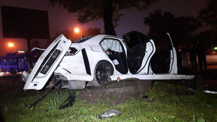 Водитель Mercedes устроил крупное ДТП на проспекте Аль-Фараби в Алматы, сообщает корреспондент программы "Территория происшествий" на телеканале СТВ.