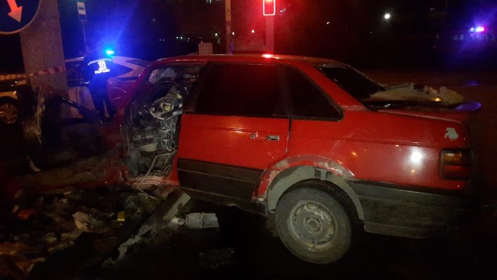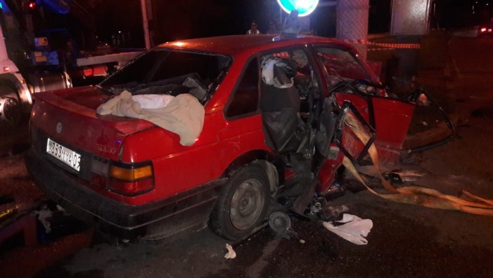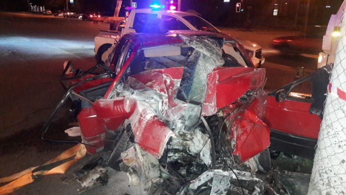 Авария произошла в ночь 24 августа на пересечении проспекта Райымбека и улицы Емцова. Водитель Volkswagen по невыясненным причинам не справился с управлением и на полном ходу врезался в столб.
