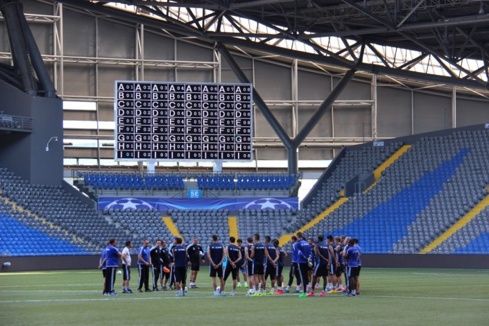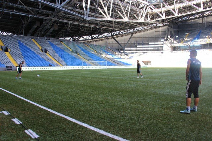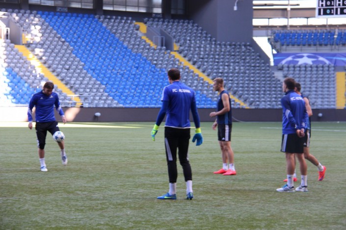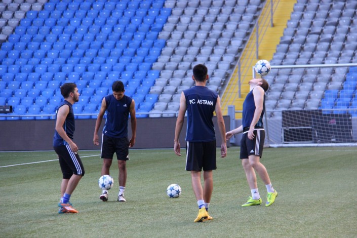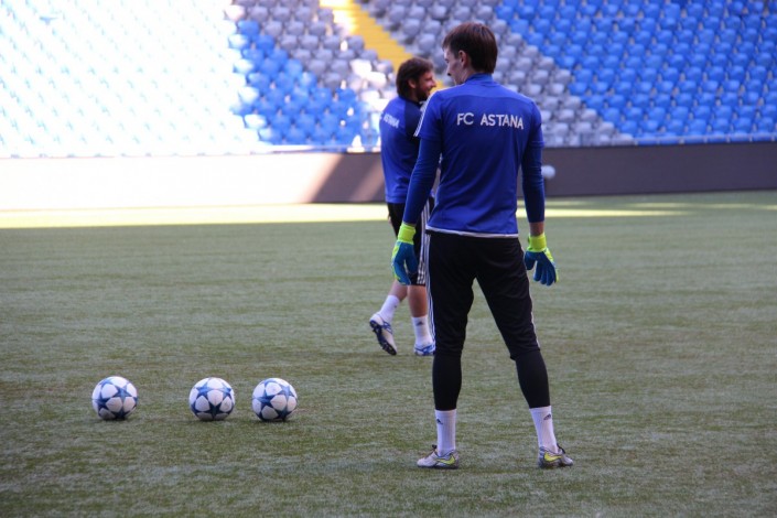 В преддверии игры футболисты "Астаны" провели тренировку. Ниже фотографии со стадиона "Астана-Арена".