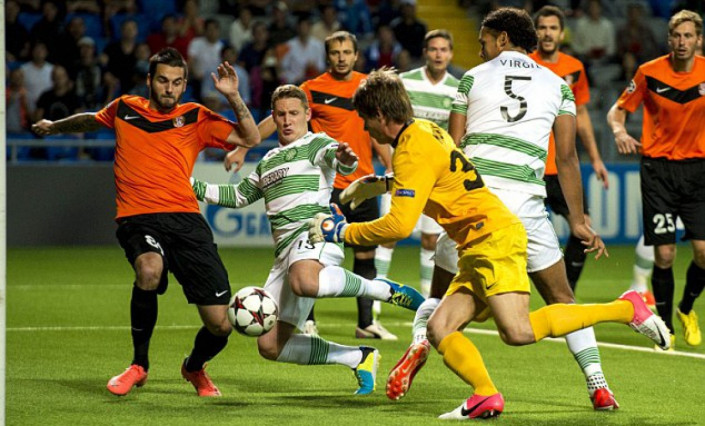 "Кеншілер "2013/14 жылғы Чемпиондар лигасы іріктеуінің плэй-офф кезеңіне дейін жеткен - кем дегенде Еуропа лигасының топтық кезеңіне жолдама қалтада. Жеребе шотландиялық "Селтикті" "Шахтерге" қарсылас қылды. Ол кезде шотландиялық клуб сапында "Манчестер Ситиден" келген Йоргос Самарас, бүгінде "Алтын допқа" басты үміткерлердің бірі Вирджил Ван Дейк сынды футболшылар ойнаған.