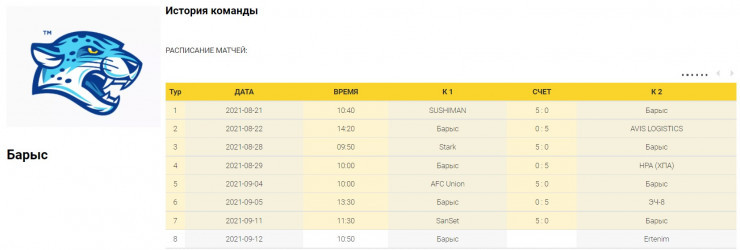 Причем у "Барыса" на данный момент во всех результатах стоит счет 0:5, в том числе и в матче с SanSet.