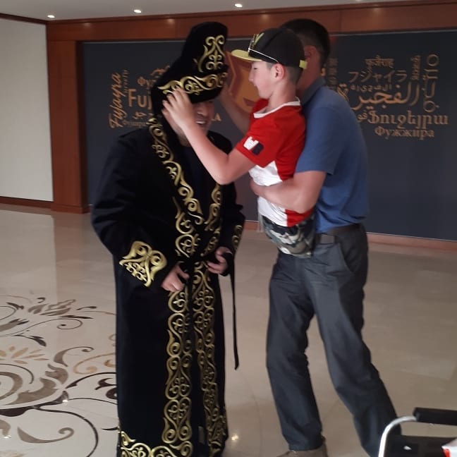 Семья родившегося без ног казахстанского мальчика Али Турганбекова подарила казахский чапан легенде мирового футбола Диего Марадоне. Али и Марадона встретились в ОАЭ, где аргентинец работает главным тренером клуба "Аль-Фуджайра".
