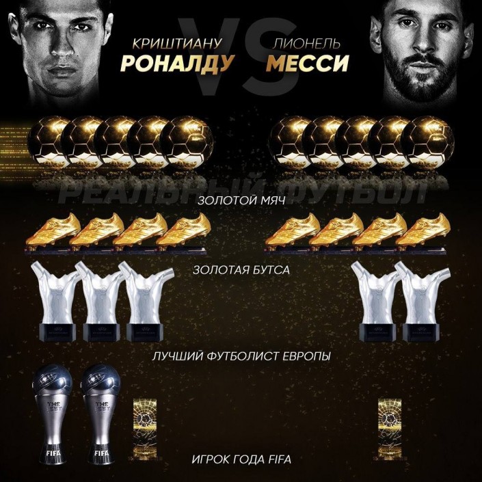 Церемония награждения состоялась в четверг в Париже. Роналду в пятый раз в карьере получил "Золотой мяч". Таким образом, португалец сравнялся с рекордсменом по количеству "Золотых мячей" - Месси.