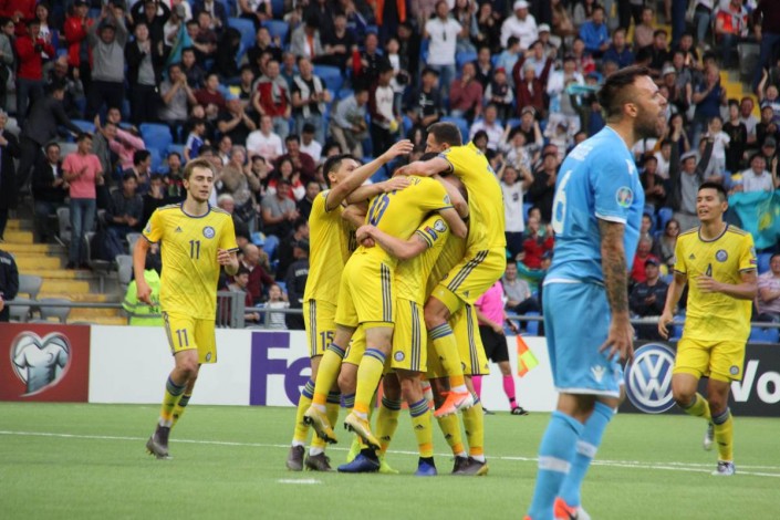Cборная Казахстана по футболу разгромила Сан-Марино в домашнем матче отборочного цикла Евро-2020, передает Vesti.kz.