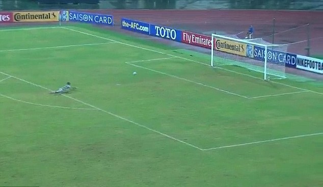 На кадрах видно, как узбекский вратарь выбил мяч из своих ворот. Снаряд перелетел практически все поле и приземлился за спиной корейского вратаря, который слишком далеко вышел в поле. Голкипер попытался настигнуть прыгающий по его штрафной мяч, но упал, а тот влетел в ворота под радостные крики зрителей.