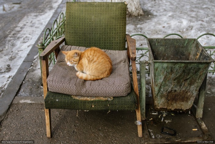 Заканчиваем мы нашу подборку фотографией кошки, сидящей на стуле в столичном районе Чугунка.