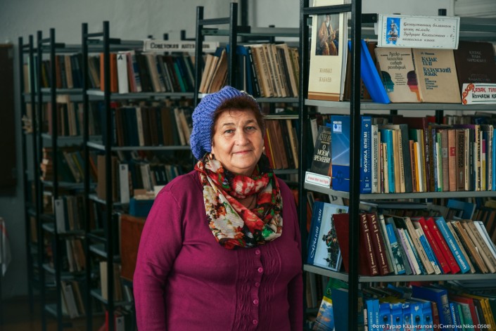 Здесь мы застали Валентину Острецову, она библиотекарь. Несмотря на то что население Чистого постоянно сокращается - кто уезжает в соседнюю Россию, кто в казахстанские поселки покрупнее, эта женщина продолжает честно выполнять свою работу.