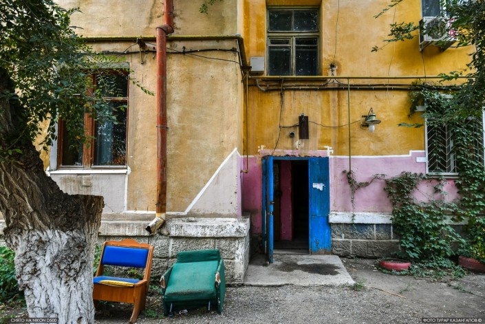 Нижнее фото со стульями на балконе также сделано в Астане. Это район юго-востока, где за последние годы вырос целый новый город.