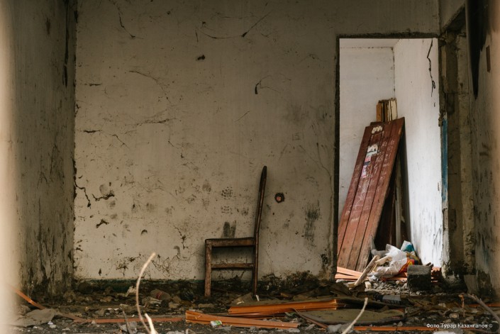 Этот стул мы нашли в тихом коридоре местной начальной школы. Она закрылась более семи лет назад. Учить оказалось некого. Осталось всего несколько детей. Их решено было отправить в интернат в соседний поселок.