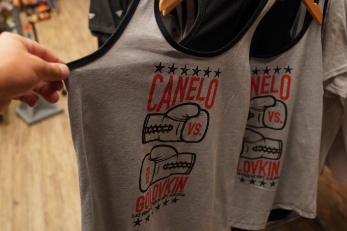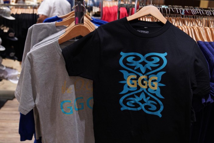 Цена на бейсболки - 40 долларов. В прошлом году именно они, с тремя буквами GGG, стали самым ходовым товаром и были раскуплены еще до дня боя.