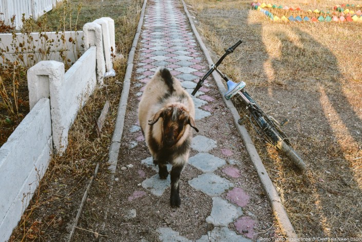 "Все. За нами пришли", - смеется еще один местный житель, указывая на любопытного козла. С этого момента это животное буквально ходило за нами по пятам, так ему были интересны новые люди.