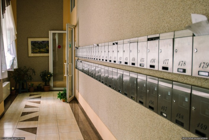 Коридор с почтовыми ящиками.
