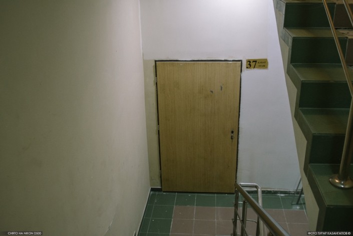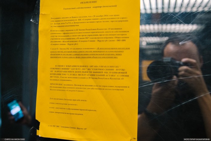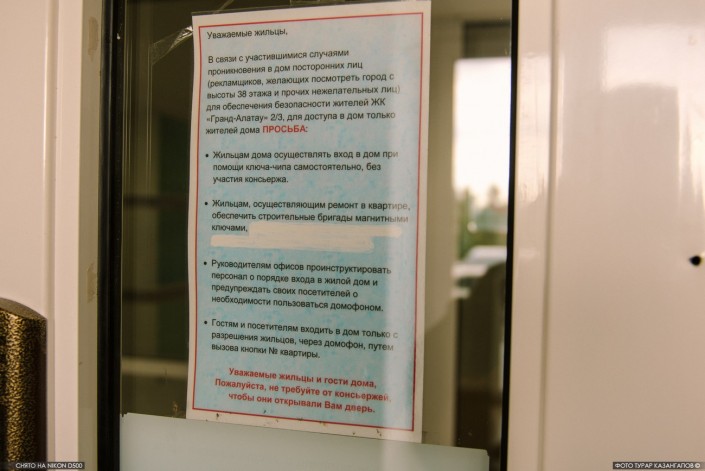 Этот дом расположен в одном из многолюдных мест - на набережной реки Есиль. Чтобы не допустить прохода туда посторонних, местному КСК пришлось расклеить специальное объявление.