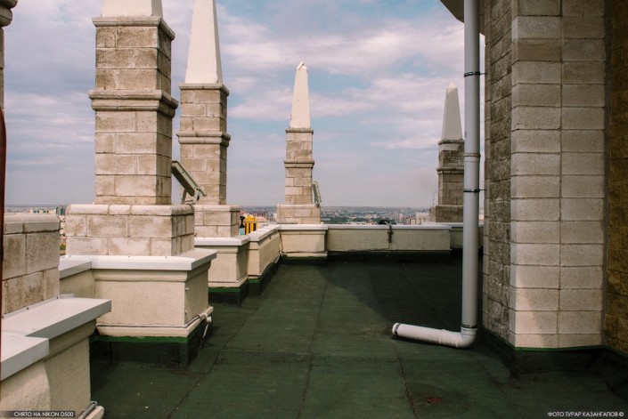 Чтобы попасть на открытую площадку, нужно пройти через технический этаж. Стоит отметить, что самостоятельно сделать это невозможно, доступ на крышу скрыт в прямом смысле за семью замками. Нужно преодолеть несколько запертых дверей.