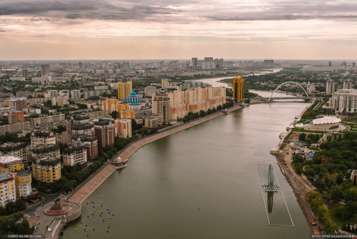 Мост через реку Есиль, ведущий в центральный парк.