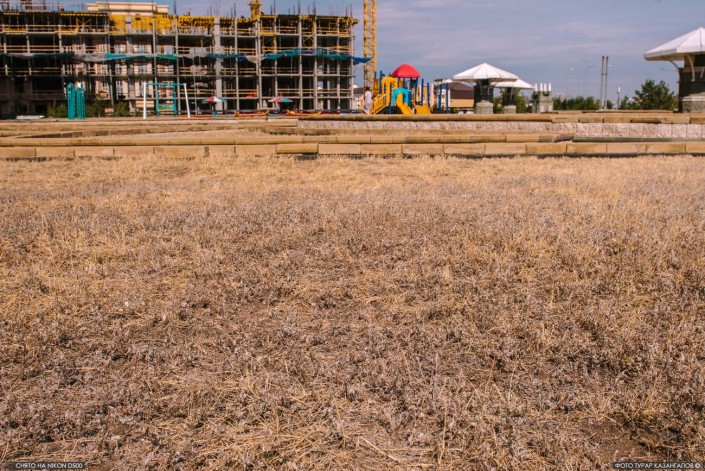 Калимаш Каировна показывает нам на выгоревшие газоны.