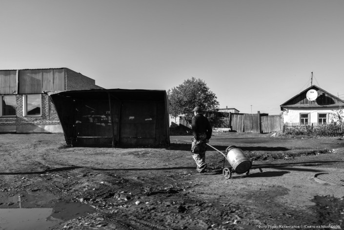 "А вы из какой газеты?" - интересуется у нас Андрей. Ему 43 года, и он живет в одном из семи жилых домов, оставшихся в поселке Сливное. Все уже давно отсюда поуезжали: кто в районный центр - город Мамлютку, кто еще дальше - в областной - Петропавловск, ну а кто и в соседнюю Россию. Граница с соседним государством проходит прямо за озером, которое называется так же, как и это село - Сливное.