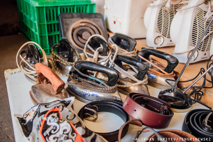 А ведь и правда для старшего поколения между "советским" и "качественным" стоит знак равенства. Да и цены здесь очень даже демократичные, от 2 до 6 тысяч тенге можно приобрести вполне еще рабочую технику, а бонусом будет краткий исторический экскурс. К примеру, утюги - по 2500, старенькие телефоны и значки - по 1000, фотоаппараты - за 5000 тенге продают.