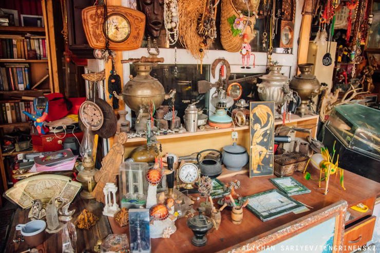 Правда, сейчас, после карантина, продажи упали, "плинтус". Если года три назад все продавалось, сегодня сюда приходят как на выставку. В музеи эти вещи я не отношу, потому что им все нужно бесплатно: "подари да подари". Киношники так вообще какие-то голодранцы, за копейки просят продать или в аренду сдать. Я ж говорю, в Казахстане такой бизнес не построишь. Старьевщиков гоняют сейчас по городу из-за пандемии. Хотя нас пока не трогают, тьфу-тьфу. А что мы там в день имеем, хорошо, если тысяч пять заработаем, окупаемости нет. Поэтому я сюда больше ради интереса прихожу, чтобы с людьми пообщаться, просветить их, рассказать историю каждого "экспоната".