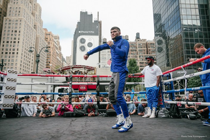 В открытой тренировке также участвовал казахстанский боксер второго среднего веса Али Ахмедов. 5 октября в андеркарте вечера Головкин - Деревянченко он выйдет на ринг с американцем Эндрю Эрнандесом.