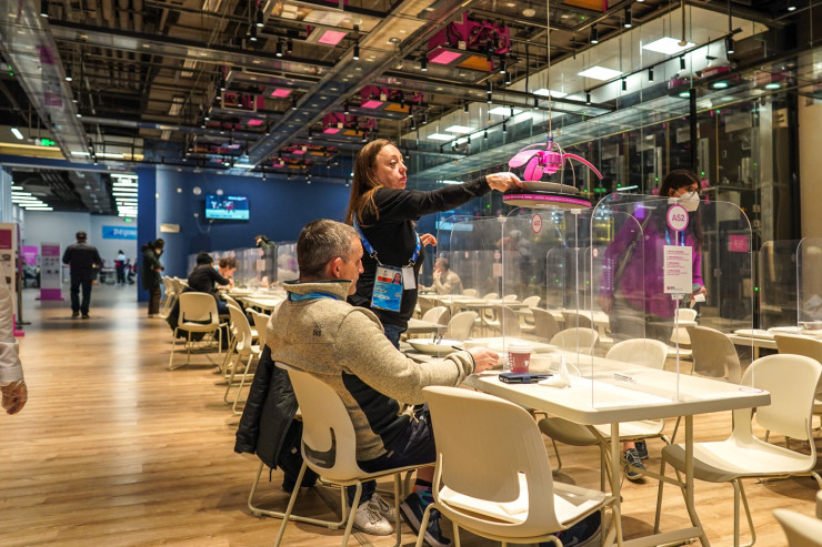 А еще здесь еду людям готовят и доставляют… роботы.