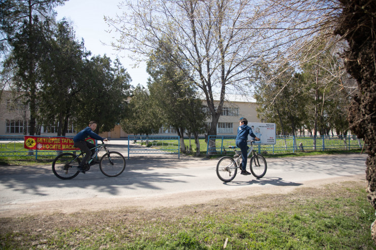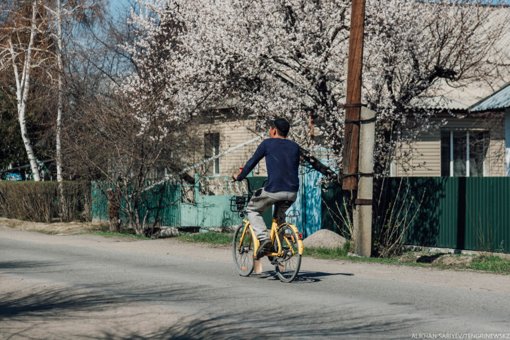 Утром в воскресенье мы оказываемся в Космосе. Википедия пишет, что здесь проживает чуть более двух тысяч человек, сами жители затрудняются назвать точную цифру, но говорят, что мужчин очень мало. В поселке красиво, пахнет весной. Главный вид транспорта тут - велосипед.