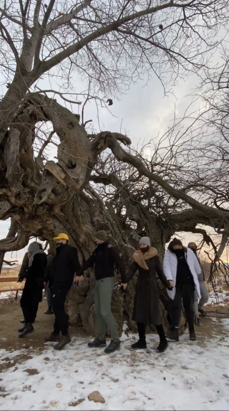 А затем мы поехали посмотреть тутовое дерево Мажратут. В селе было два огромных дерева, но, к сожалению, местные дети, играя с огнем, подожгли одно из них.
