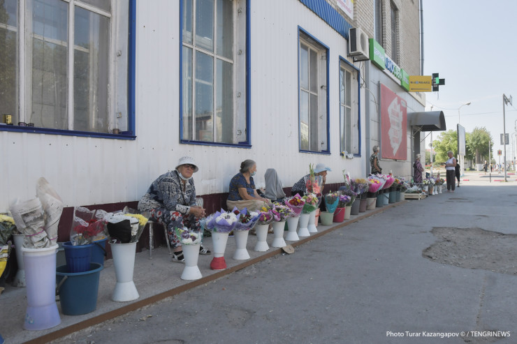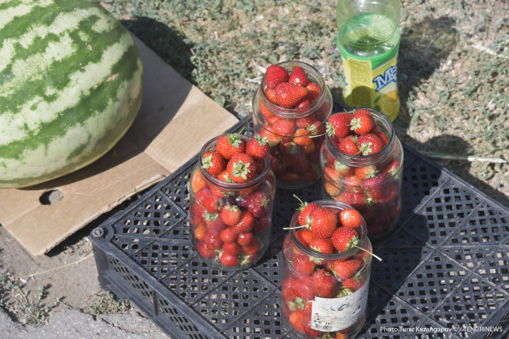 На главной улице мы увидели длинный строй людей, продающих цветы, ягоды, помидоры, виноград и прочие продукты.