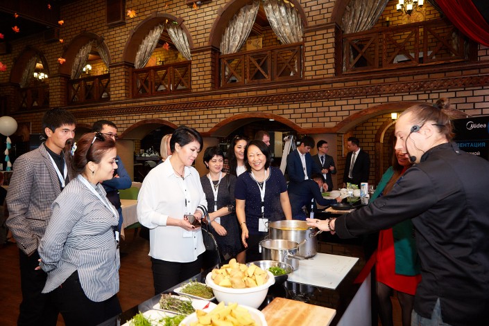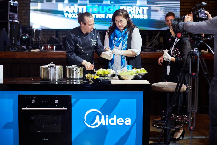 В программу двухдневной презентации, проходившей в стенах ресторана "ATLAS", вошел кулинарный поединок с участием Василия Емельяненко, который наглядно продемонстрировал преимущества использования новыми продуктами компании "Midea" в повседневной жизни.