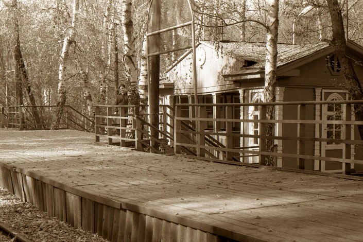 Детская железная дорога в парке имени Горького. Станция имени Павлика Морозова. Касса, диспетчерская. 1950-е годы.