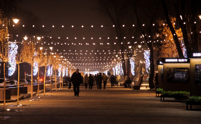 В канун Нового года Алматы засиял праздничными огнями. На улицах города появились красочные елки и необычные световые инсталляции.
