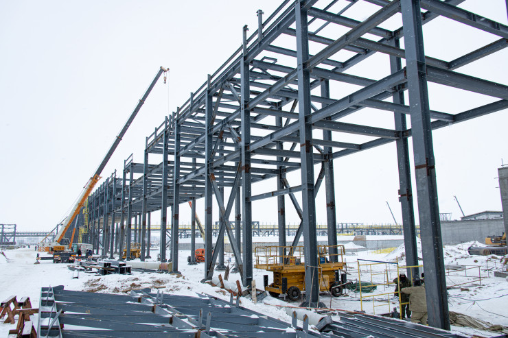 Для изготовления и поставки металлоконструкций были привлечены 8 казахстанских предприятий. При определении поставщиков основной упор делали на наличие достаточных производственных мощностей, качество и сроки изготовления. Поставлено 28 378 тонн металлоконструкций, из них казахстанских – 10 500 тонн. Смонтировано уже 24 137 тонн.