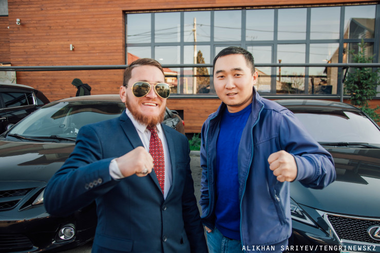 Молодого харизматичного паренька в строгом деловом костюме, с идеально уложенными волосами и в черных очках замечаем еще за несколько десятков метров до парковки. С особой прытью он оказывается возле нашей машины и услужливо открывает дверь, при этом здороваясь сразу на двух языках - казахском и русском. Его осанка, походка, жесты - прямо копия Макгрегор, только с нашим отечественным колоритом.