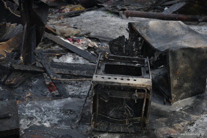 Кто-то давал интервью телеканалам. Впрочем, это был, скорее, крик души. Мужчины и женщины в направленные на них камеры говорили про пятерых погибших детей, указывали на сгоревшую времянку, вновь и вновь вопрошая: ну как можно такой большой семье жить в таком маленьком строении! На последующих фото: утро после пожара.
